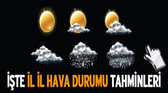 Marmara bölgesinin az bulutlu olması bekleniyor. Ege Bölgesi az bulutlu ve açık olacak. Ege'nin iç kısımlarında şiddetli rüzgar hakim olacak. Akdeniz Bölgesi'nde de hava açık ve sakin olacak ancak rüzgar etkisini gösterecek. İç Anadolu Bölgesi parçalı ve az bulutlu olacak. Karadeniz Bölgesi'nde havalar bulutlu olacak ve yer yer sağanak yağışlar görülecek. Güneydoğu Anadolu Bölgesi'nde ise hava sıcaklıkları yüksek olacak.