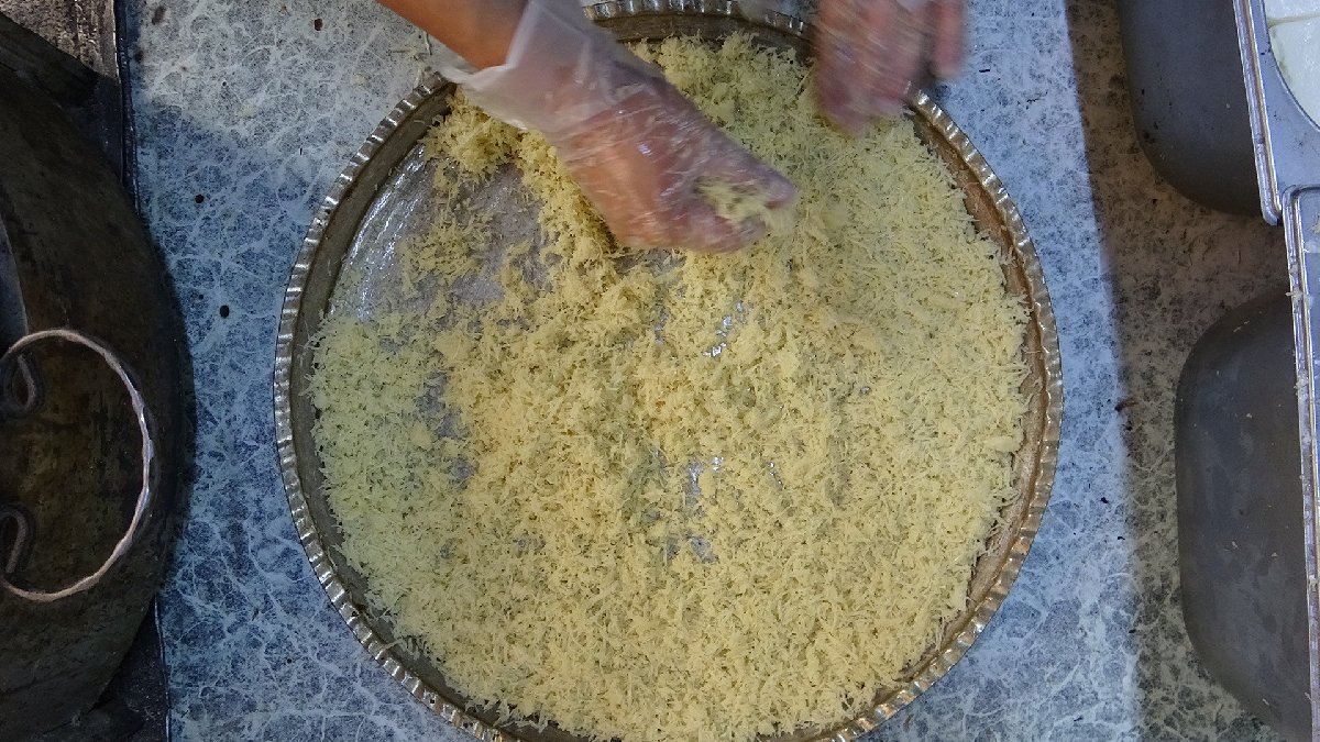 Antakya ilçesinde bulunan Tarihi Uzun Çarşı'da künefecilerin Kurban Bayramı mesaisi sürdürüyor.