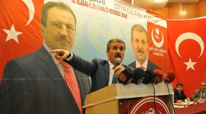 BBP Genel Başkanı Mustafa Destici, dün akşam saatlerinde Sivas`a gelerek bugün partisinin Sivas İl Başkanlığı tarafından düzenlenen 10`uncu olağan kongresine katıldı. Sivas Belediyesi Nikah Salonu`nda gerçekleştirilen kongre saygı duruşu ve İstiklal Marşı`nın okunmasıyla başladı. Kongreye Destici`nin yanı sıra il, ilçe başkanları ve partiler katıldı. Burada konuşan Destici, Türkiye`nin son 5 yılda 20`ye yakın bombalı saldırıyla muhatap olduğunu ve bu saldırılarda 300 yakın şehit verildiğini söyledi.