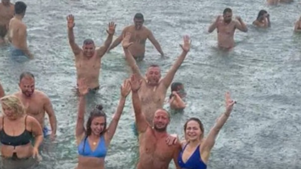 Bebek sahilinde denize girenler, yağmura aldırmadan suda kalmayı tercih etti.