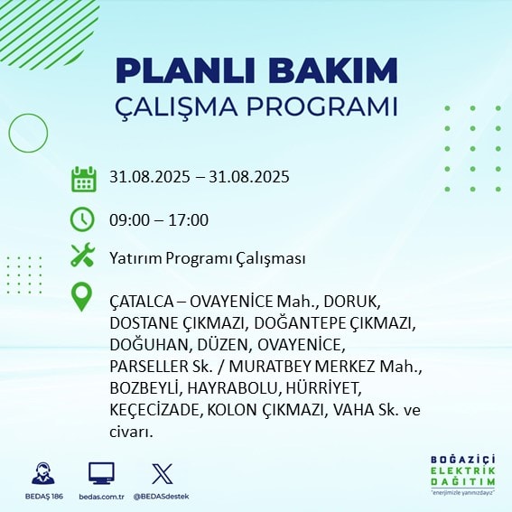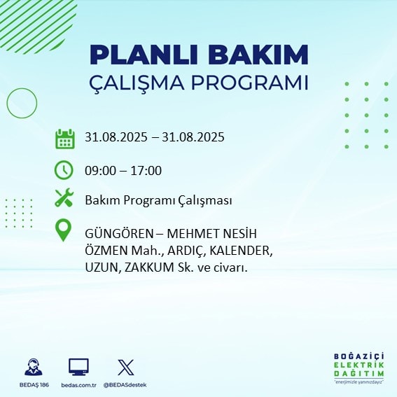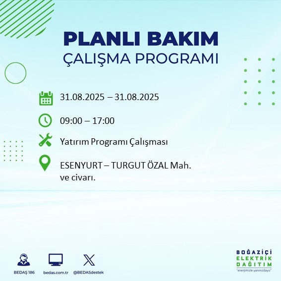 İşte 31 Ağustos 2025 günü İstanbul'da elektrik kesintisi olacak bölgeler...