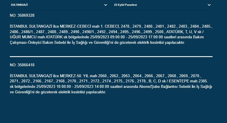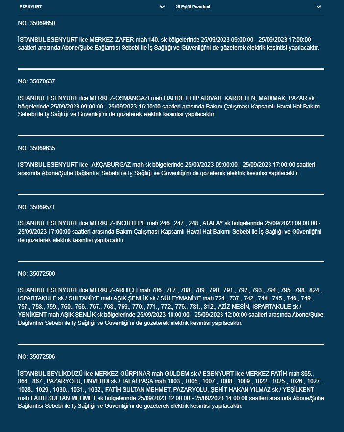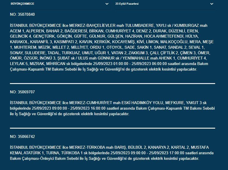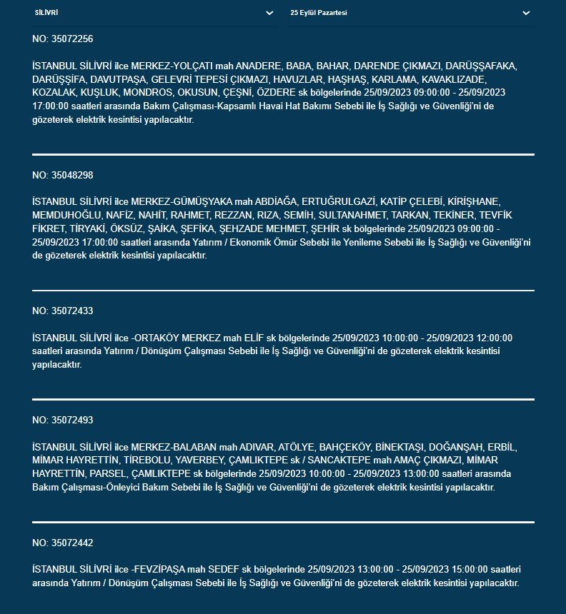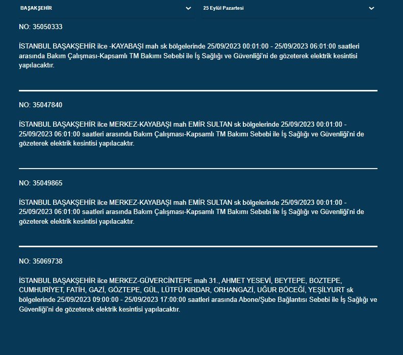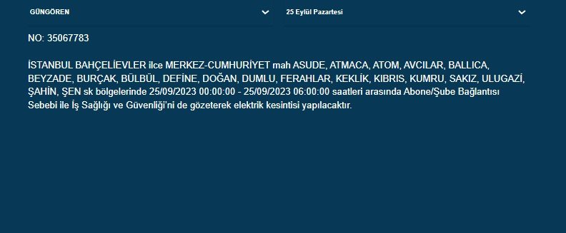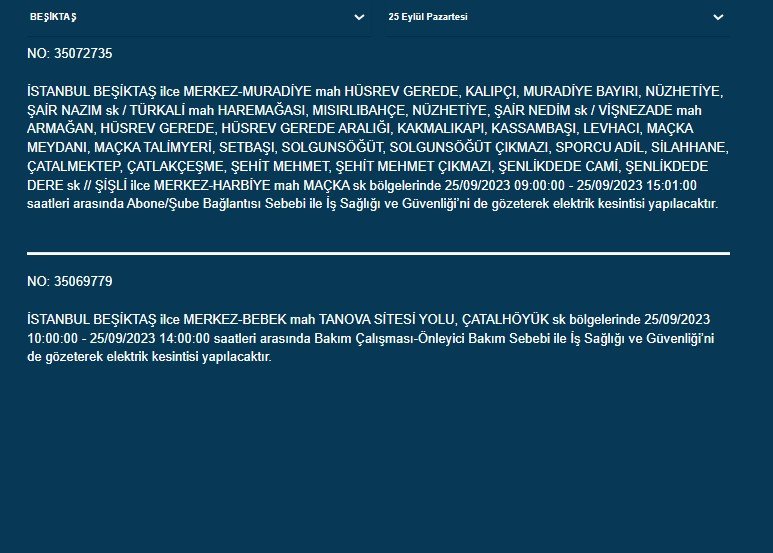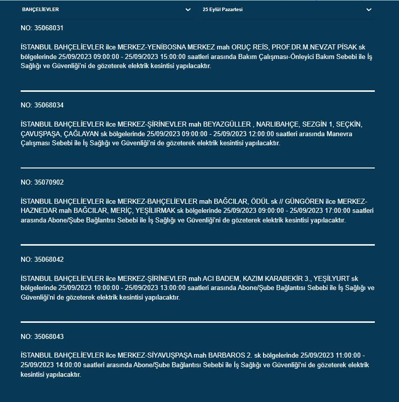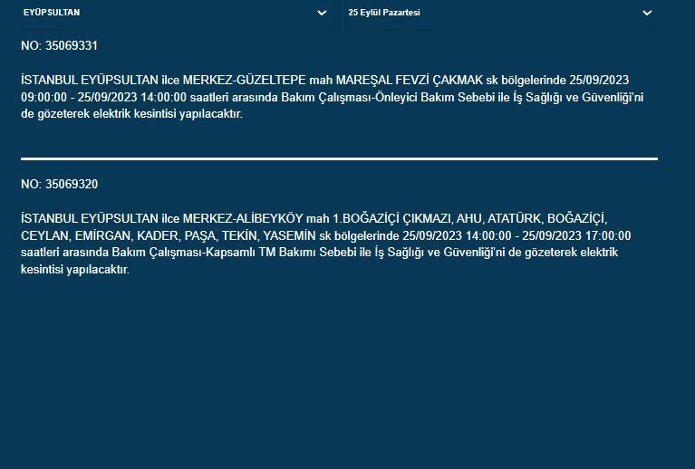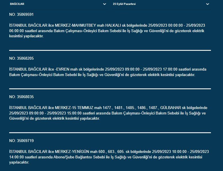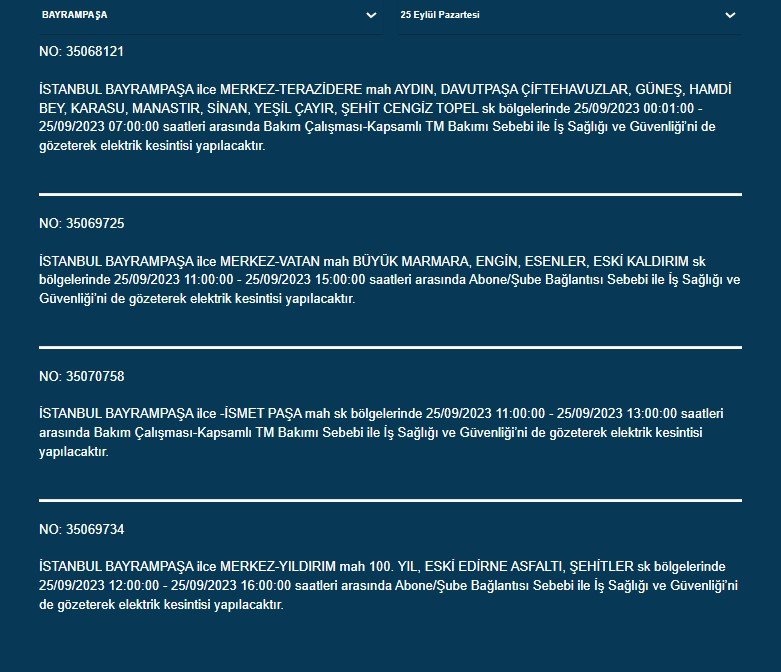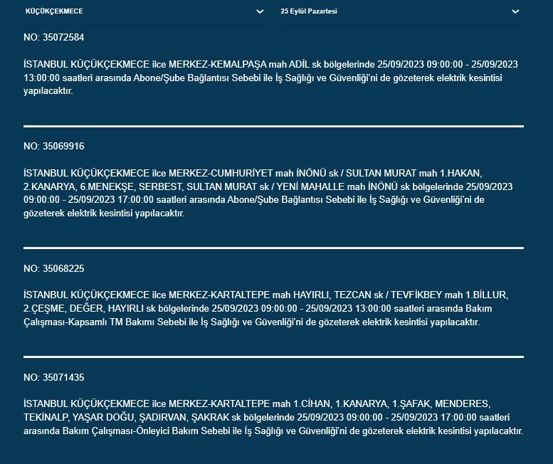 BEDAŞ'tan yapılan açıklamaya göre 25 Eylül Pazartesi günü İstanbul'un 22 ilçesinde elektrik kesintisi yaşanacak. İşte saat saat elektrik kesintileri...