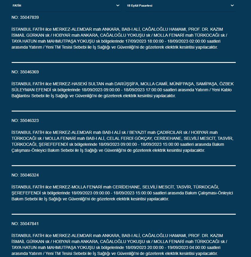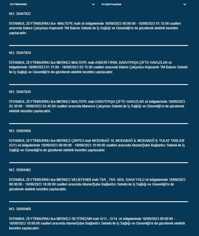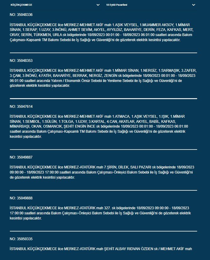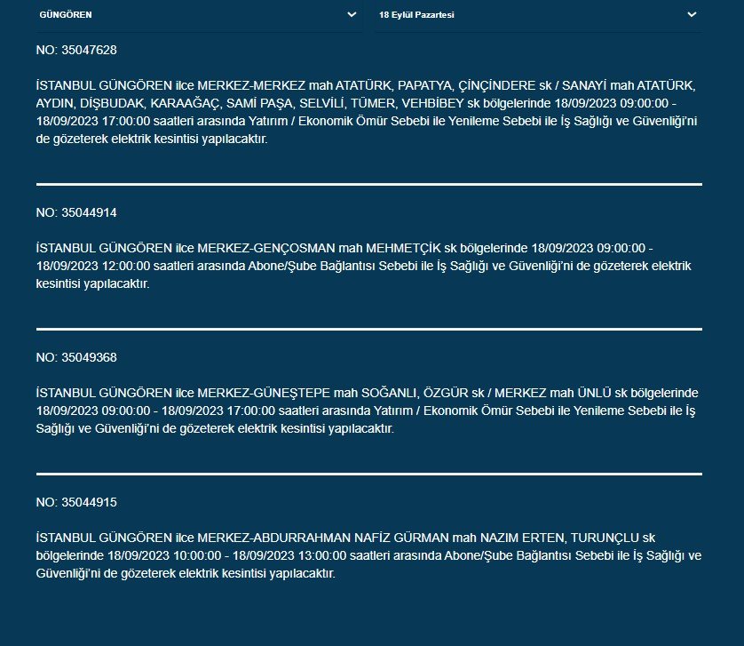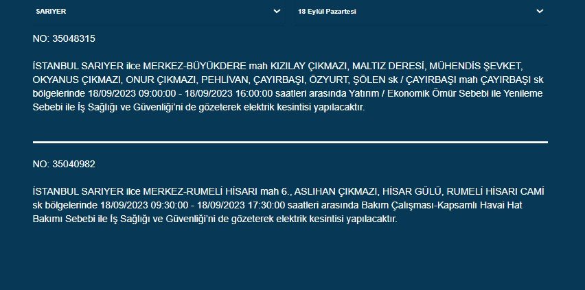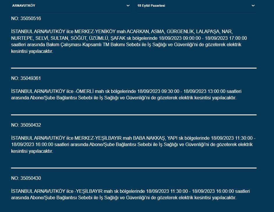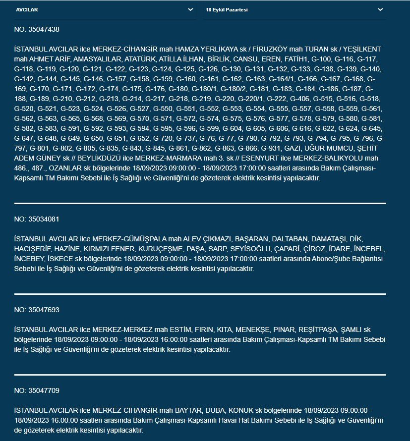 BEDAŞ'tan yapılan açıklamaya göre 18 Eylül Pazartesi günü İstanbul'un 19 ilçesinde elektrik kesintisi yaşanacak. İşte saat saat elektrik kesintileri...