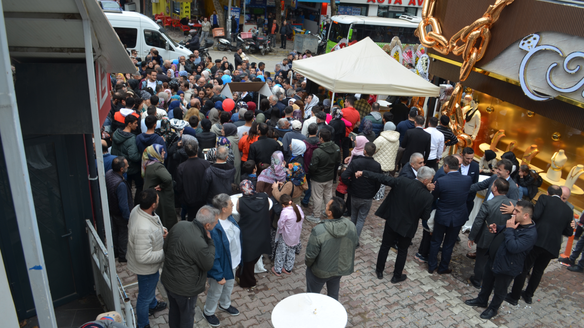 Açılış kurdelesinin kesilmesinin ardından mağaza görevlileri tarafından geliş sıralarına göre numara verilen vatandaşlara hediye altın ve saatleri dağıtıldı.