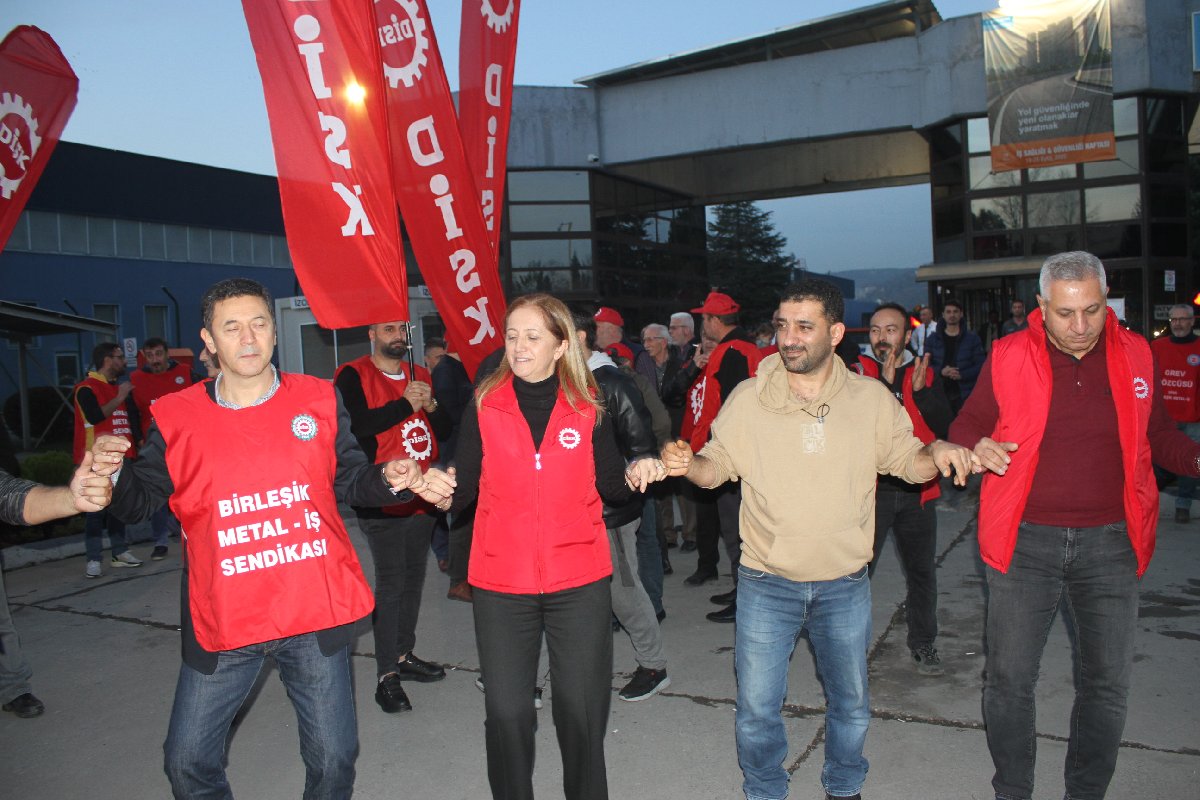 Konuşmanın ardından DİSK Başkanı Arzu Çerkezoğlu, işçilerin grev halayına katıldı.