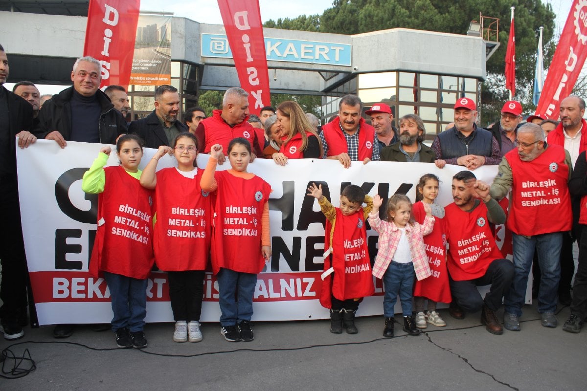 Çerkezoğlu, "Bu direniş, sadece bu fabrikadaki arkadaşlarımızın mücadelesi değil, bütün işçi sınıfının mücadelesidir. Grev yasağına teslim olmayan, grev hakkına sahip çıkan, tezgah başından kalkıp burada grev çadırını kuran, grev önlüğünü giyen Bekaert işçisi kardeşlerimi bütün Türkiye işçisi adına selamlıyorum, kutluyorum" dedi.