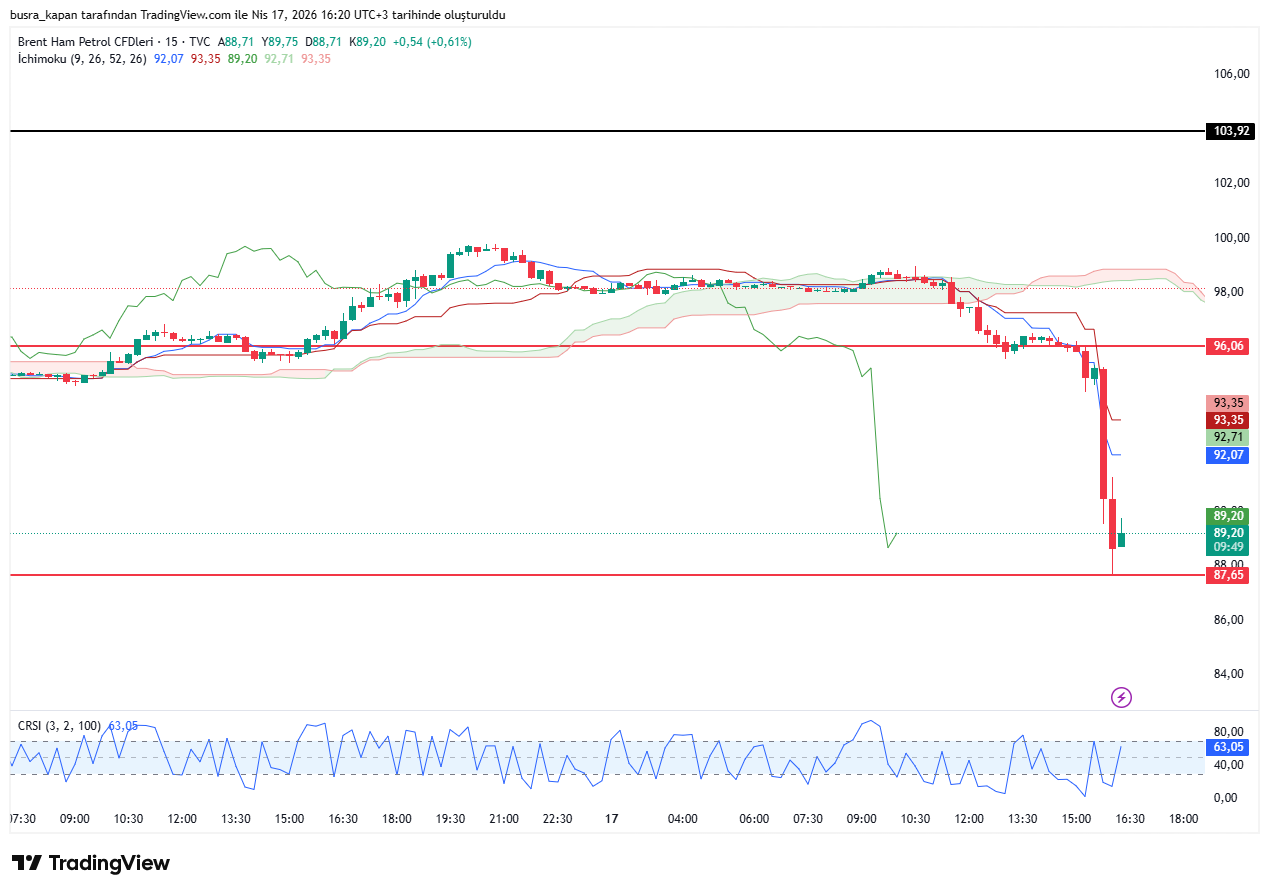 Brent petrolde düşüşler görüldü. Brent petrol 94 dolardan sert düşüş yaşayarak, 16.00'da 87,65 dolara geriledi.