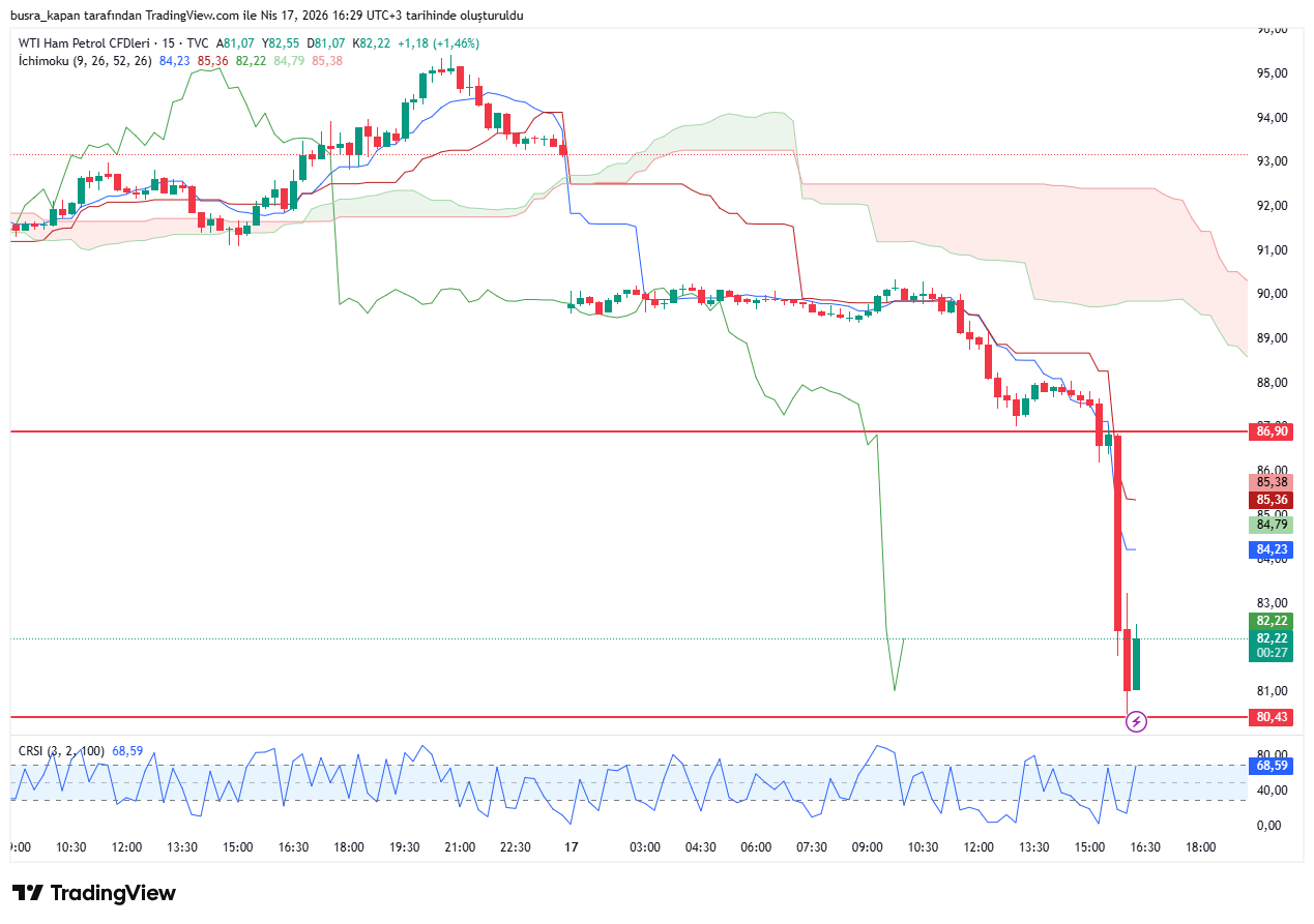 Ham petrolde de düşüşler görüldü. Ham petrol 86,90 seviyesinden sert düşüş yaşayarak 80.43 seviyesine geriledi.