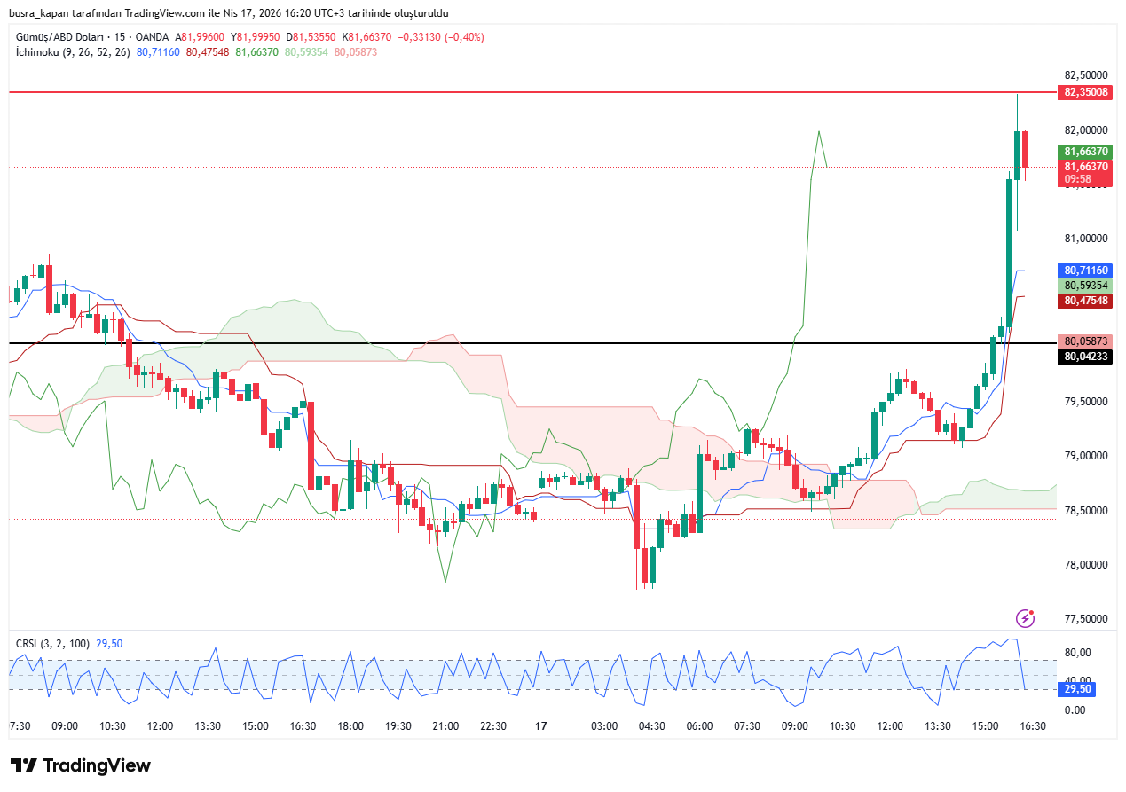 Ons gümüşte de yukarı yönlü hareketlenmeler görülüyor. Ons gümüş 80 dolar seviyesinden tepki alımı başlatarak 82 dolara çıktı.