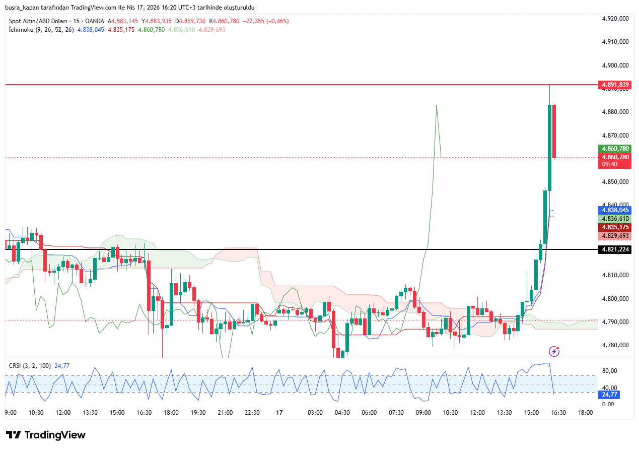 Ons altında gelen haberler sonrası yönünü yukarı çevirdi. Ons altın 4 bin 821 dolardan tepki alımı başlatarak 16.00'da 4 bin 891 dolara yükseldi.