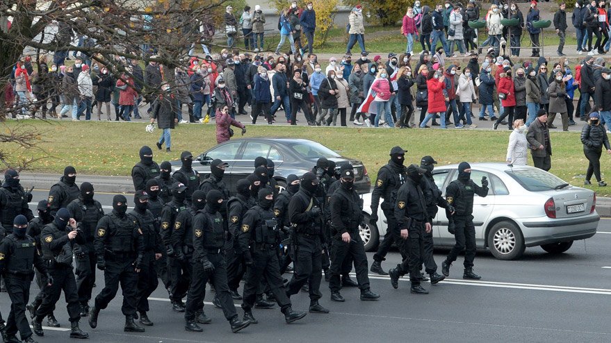 Diğer gruplar da yine polis ablukalarına doğru harekete geçince Belarus polisi tarafından biber gazı, ses bombası ve plastik mermilerle göstericilere müdahale edildi.
