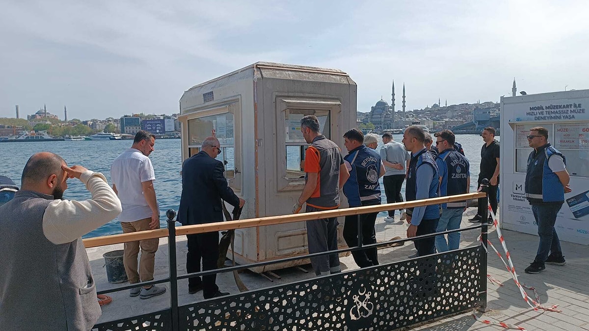 Vatandaşların yürüyüş alanlarını kısıtlayan uygulamaya itiraz etmeleri sonucu rıhtıma giden belediye ekipleri, kıyıda bulunan güvenlik kulübesini kaldırdı.