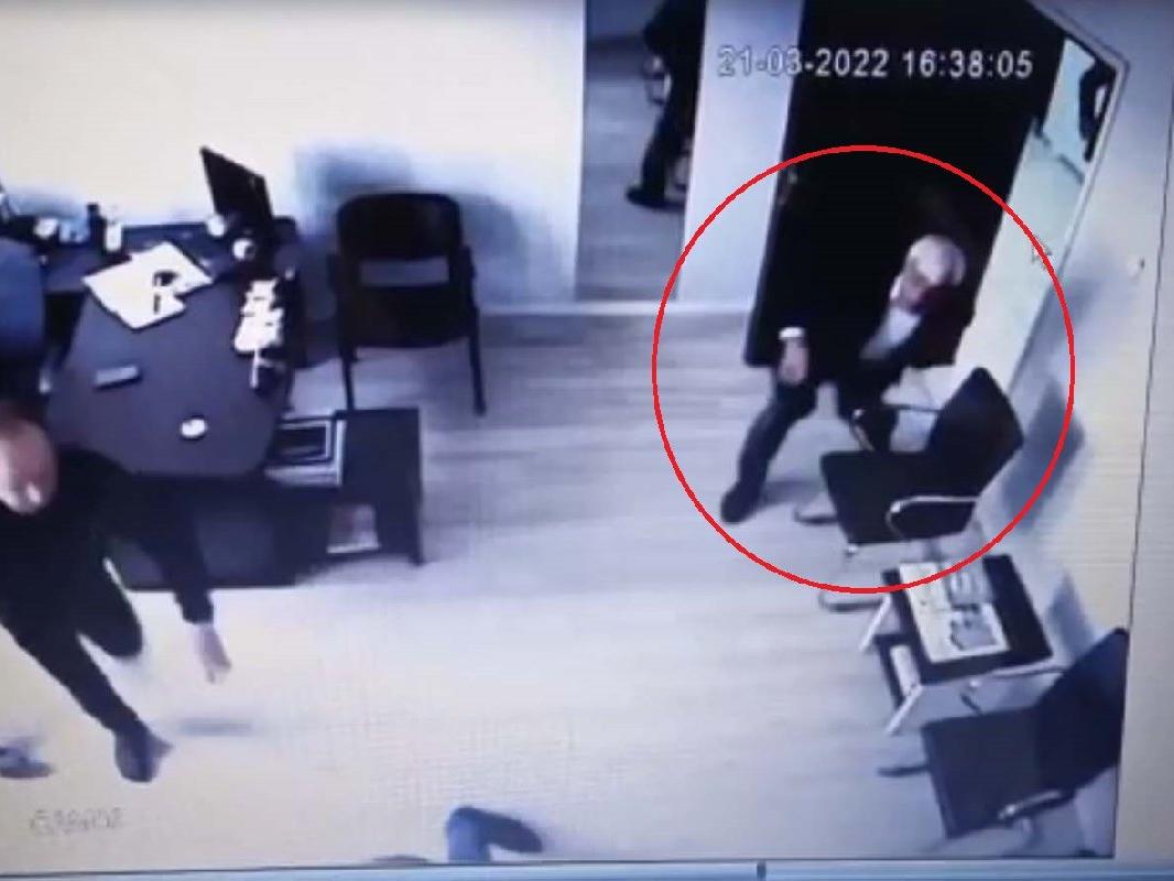 Emre D.'nin silahla sekreterliğe girip makam odasına yöneldiği, bu sırada görevliler tarafından yaşanan arbede sonucu etkisiz hale getirildiği görülüyor. Olaya ilişkin başlatılan soruşturma sürüyor. (DHA)