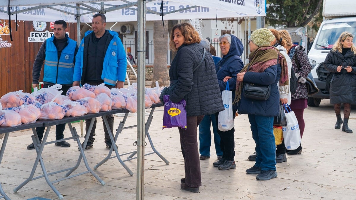 Atapark Meydanı’nda Sosyal İşler Müdürlüğü ekipleri tarafından gerçekleştirilen dağıtıma, Milas Belediye Başkanı CHP’li Fevzi Topuz ile Belediye Başkan Yardımcısı Ali Özgür de katıldı. Etkinlik, vatandaşlardan yoğun ilgi gördü.
