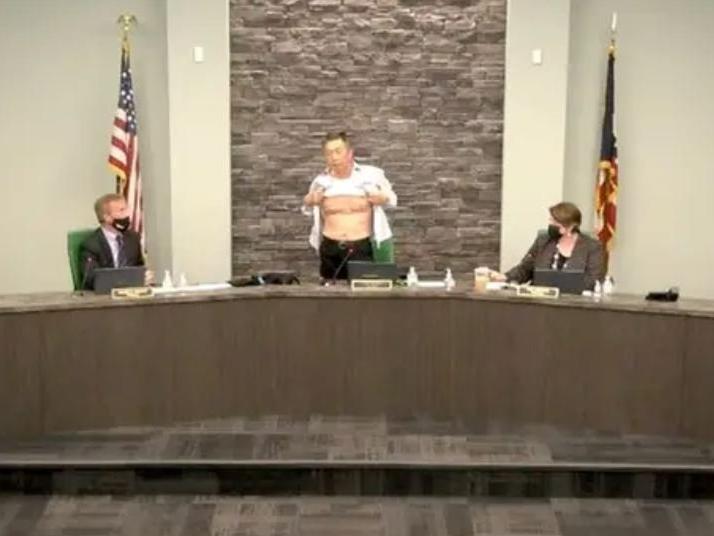 Toplantıda söz alan Wong, "Beni yanlış anlamayın ben bu topluluktaki insanları çok seviyorum fakat bazı anlayışsız insanlar bana gelip benim yeteri kadar Amerikalı olmadığımı söylüyor ya da vatan sevgimi sorguluyorlar. Bundan korkmuyorum ve artık bundan bıktım" dedikten sonra belediye binasındaki toplantıda gömleğini çıkarmaya başladı.