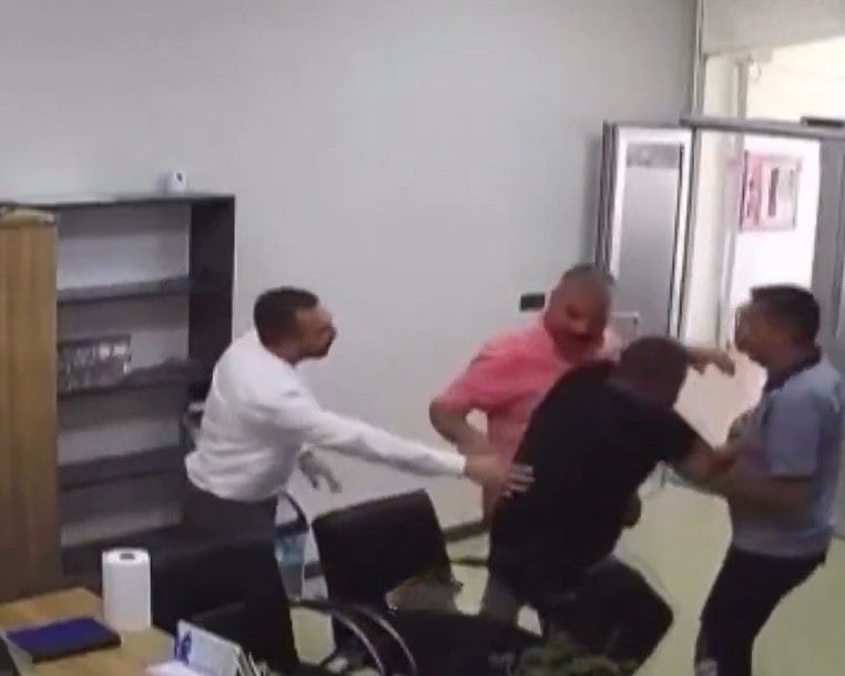 Ancak bu kez Mercimek önündeki sehpaya yumruk atınca, odada bulunan bir şahıs da Mercimek'in suratına yumruk attı.