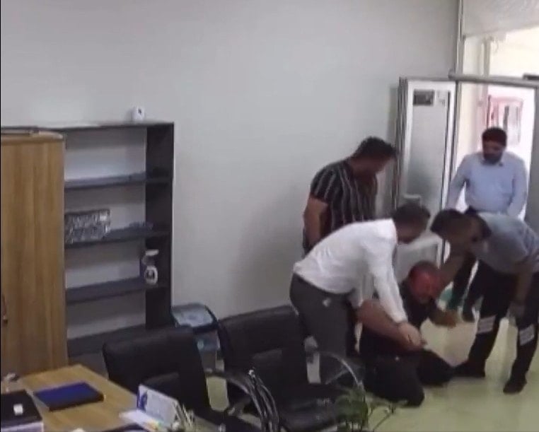Üzerinde özel güvenlik kıyafeti bulunan başka bir şahıs da Mercimek'e müdahale ederek odadan çıkarttı.