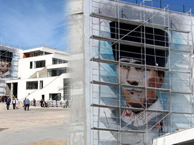 Yapımı süren dev portre kentte yaşayan vatandaşlar tarafından beğeni ile karşılandı.