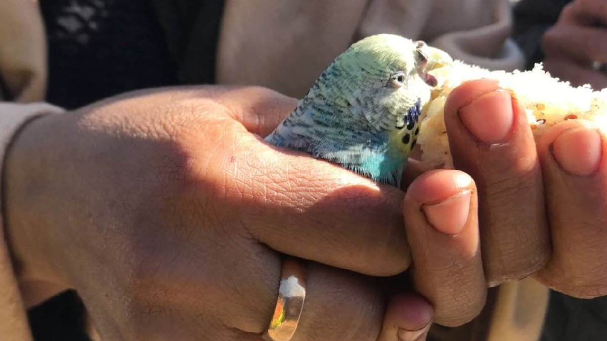 Teyze Öztürk, yeğeninden aldığı kuşu önce bağrına bastı, sonra da çevreden bulduğu ekmekten yedirdi, şişe kapağından su içirdi. Zaman zaman sevinç gözyaşları döken teyze, "Allah'a şükürler olsun." dedi. (DHA-AA)