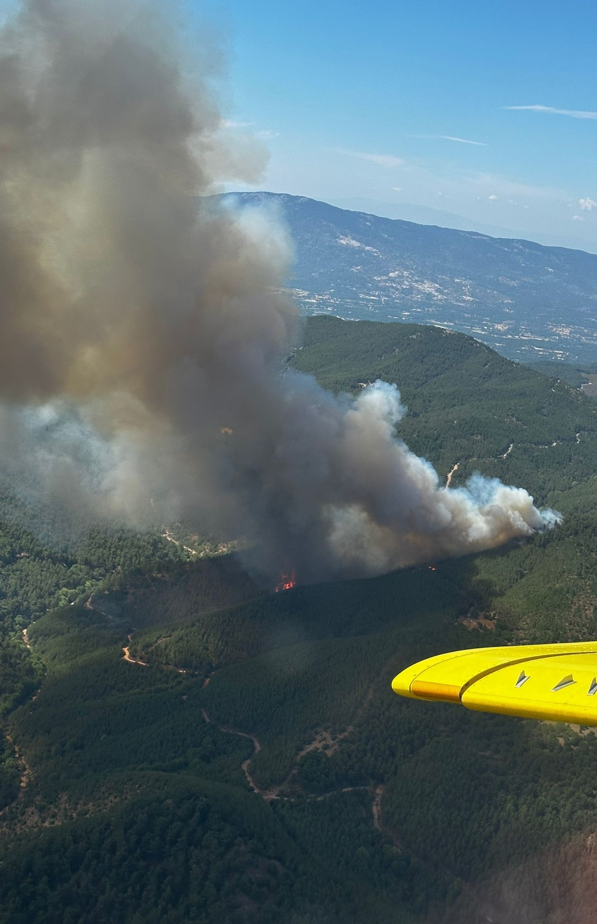 İhbar üzerine bölgeye İzmir Orman Bölge Müdürlüğüne bağlı 6 uçak, 11 helikopter, 40 arazöz, 8 su ikmal aracı ve 4 dozer sevk edildi.