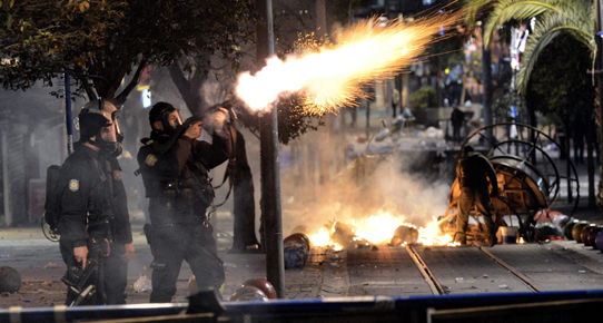 Express / Çok sayıda gözaltı- Yeniden şiddetli protestolar: Türkiye’de polis ile göstericiler arasında şiddetli çatışmalar meydana geldi. Polis kendilerine havai fişek atan insanların üzerine tazyikli suyla gitti. Çok sayıda kişi gözaltına alındı.