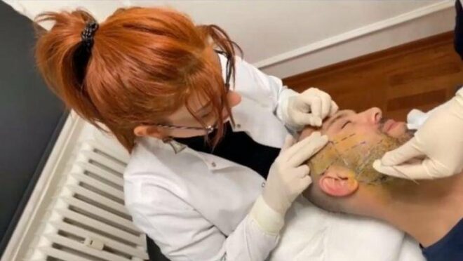 Ameliyatsız yüz germe operasyonunun gerçekleştirilme anı ise sosyal medyada yayınlandı.