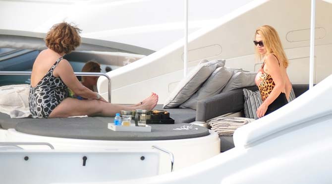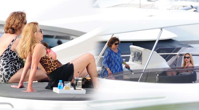 Kendi teknelerinin üzerinde çay keyfi yapan Berrak Hanım, yanındaki bayan ile birlikte 5 çayı keyfi yaşadı. Görüntülendiğinin farkına varan Berrak Barut tedirgin olarak yanındaki bayan ile birlikte teknenin iç tarafına doğru gitti.