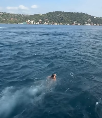 Geçen günlerde şarkıcı Betül Demir Boğaz'da yüzmüştü. Şimdi de oyuncu Berrak Tüzünataç kendini Boğaz'ın sularına bıraktı.