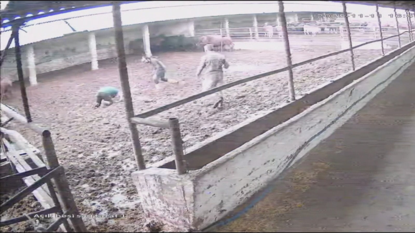 Amasya'nın Suluova ilçesinde büyükbaş hayvan yetiştiriciliği yapılan bir çiftlikte çalışan besici, hayvanları bir araya toplamak istediği sırada boğanın saldırısına uğradı. Boğanın aniden besicinin üzerine atladığı ve boynuz darbesiyle yere savurduğu anlar, çiftliğin güvenlik kamerası tarafından kaydedildi.