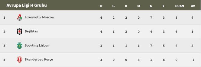 Bu sonuçla grupta puanını 6'ya yükselten Beşiktaş, liderlik fırsatını bir kez daha kaçırdı. Beşiktaş karşısında da ikinci kez sahadan beraberlikle ayrılan Lokomotiv Moskova ise puanını 8'e yükseltti. Beşiktaş, gruptaki bir sonraki maçında 26 Kasım'da Arnavutluk'un Skenderbeu takımı ile karşılaşacak.