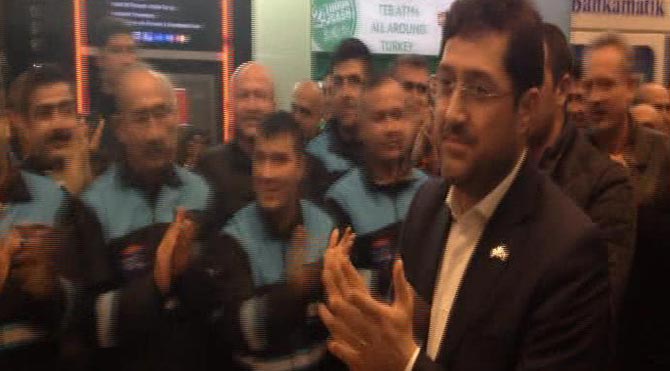 Foto: DHAYaklaşık 400 temizlik işçisi saat 21.30 sıralarında Atatürk Havalimanı Dış Hatlar Terminali'nde toplanmaya başladı. Üzerlerinde işçi kıyafetiyle terminalde bekleyen işçiler, Umre'den dönen Beşiktaş Belediye Başkanı Murat Hazinedar'ı alkışlarla ve çiçeklerle karşıladı. Hazinedar da işçilerle tek tek tokalaşarak selamlaştı.