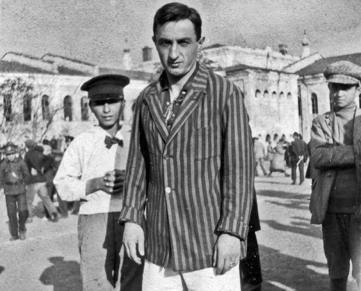 Fenerbahçe Stadı'nda oynanan Atatürk Kupası mücadelesinde Fenerbahçe ile Beşiktaş takımları karşı karşıya geldi. Kaptanlar Büyük Fikret ve Baba Hakkı maç öncesi birlikte fotoğraf çektirdi. (1935) | Fotoğraf: DepoPhotos.