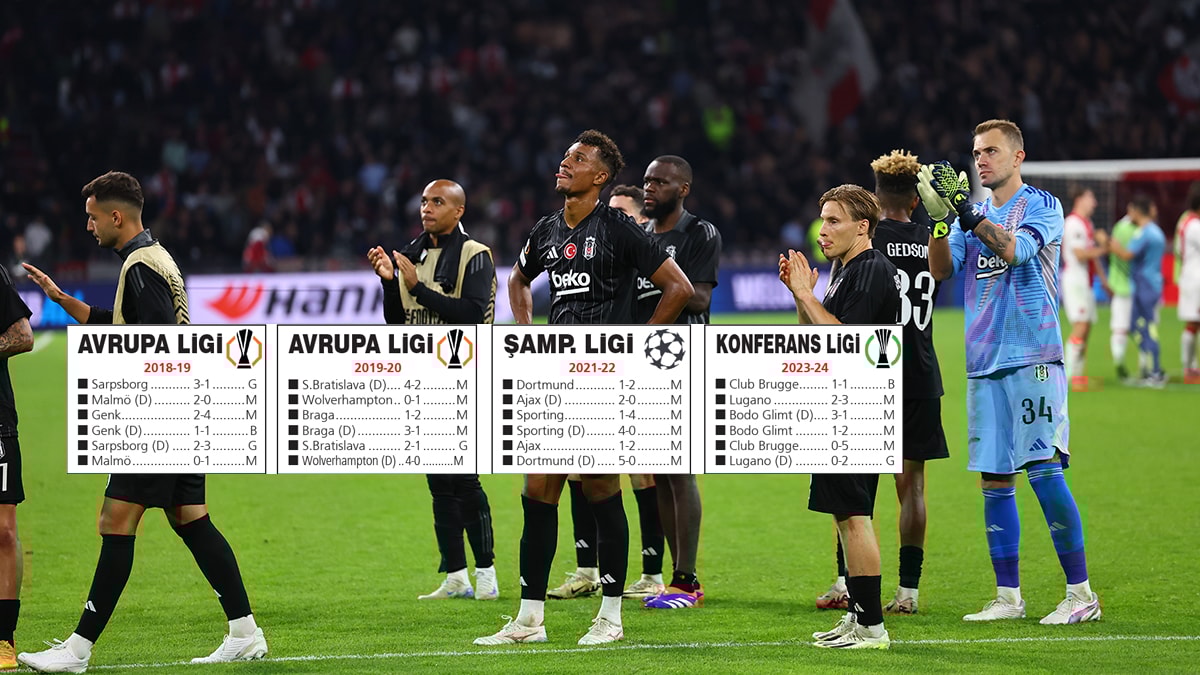 Siyah-beyazlılar geçen sezon da Konferans Ligi grubunu üçüncü sırada tamamladı. Yeni formatıyla tek bir lig halinde oynanan Avrupa Ligi’ndeki bu kötü gelenek sürdü. Beşiktaş, 4-0’lık Ajax yenilgisiyle 36 takım arasında son sıraya oturdu.