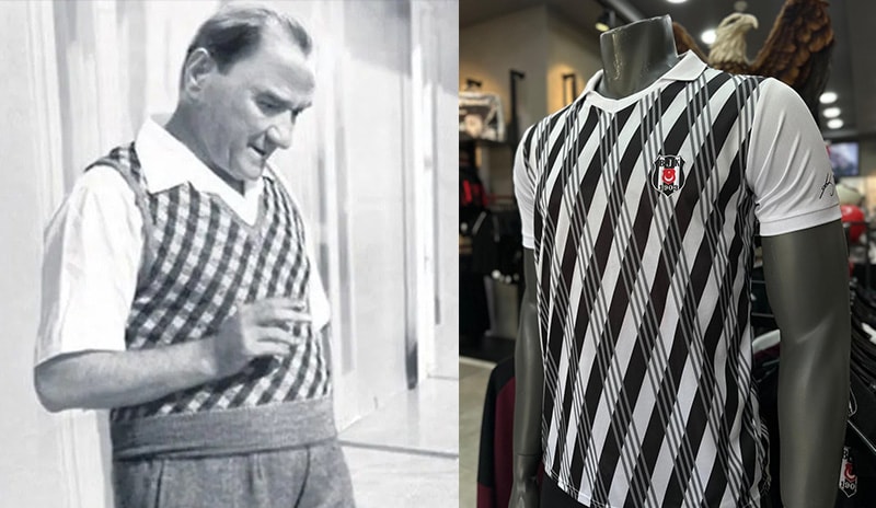 Gazi Mustafa Kemal'in en ünlü fotoğraflarından birinde üzerinde gördüğümüz çizgili hırkasından esinlenerek tasarlanan özel forma Kartal Yuvası vitrinlerinde görücüye çıktı.