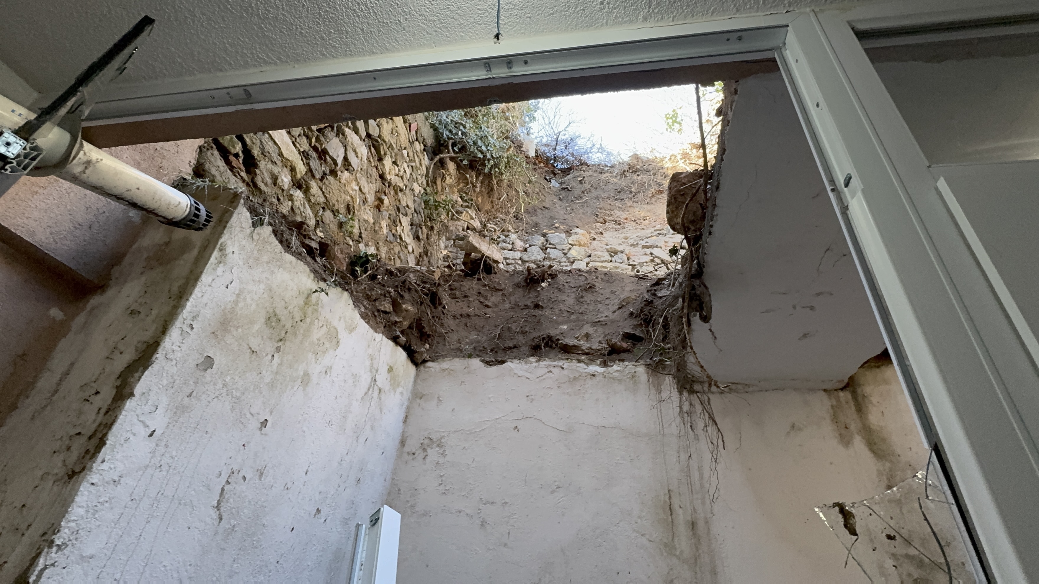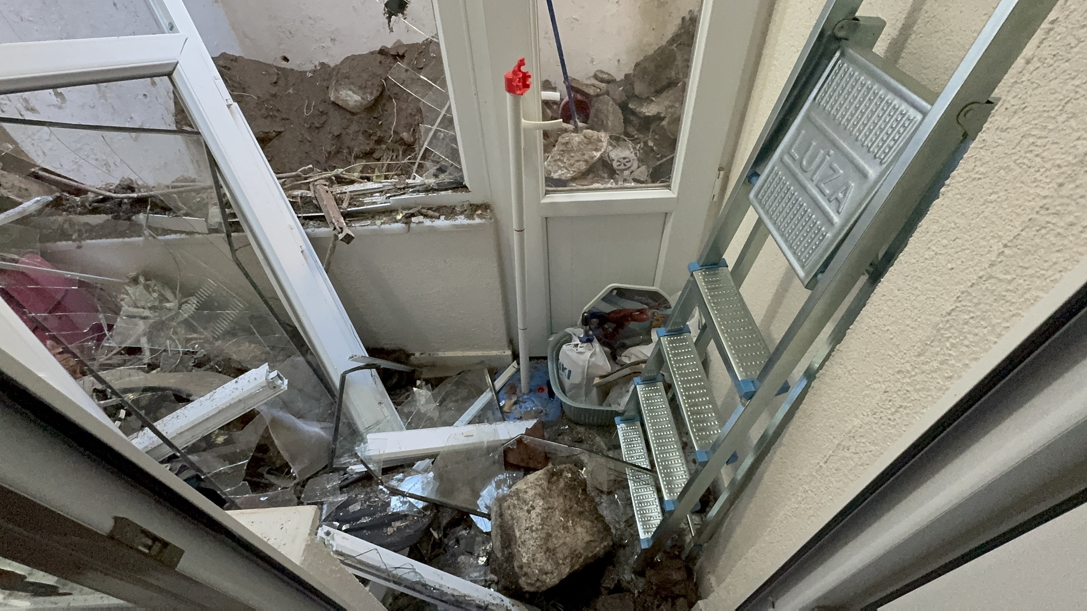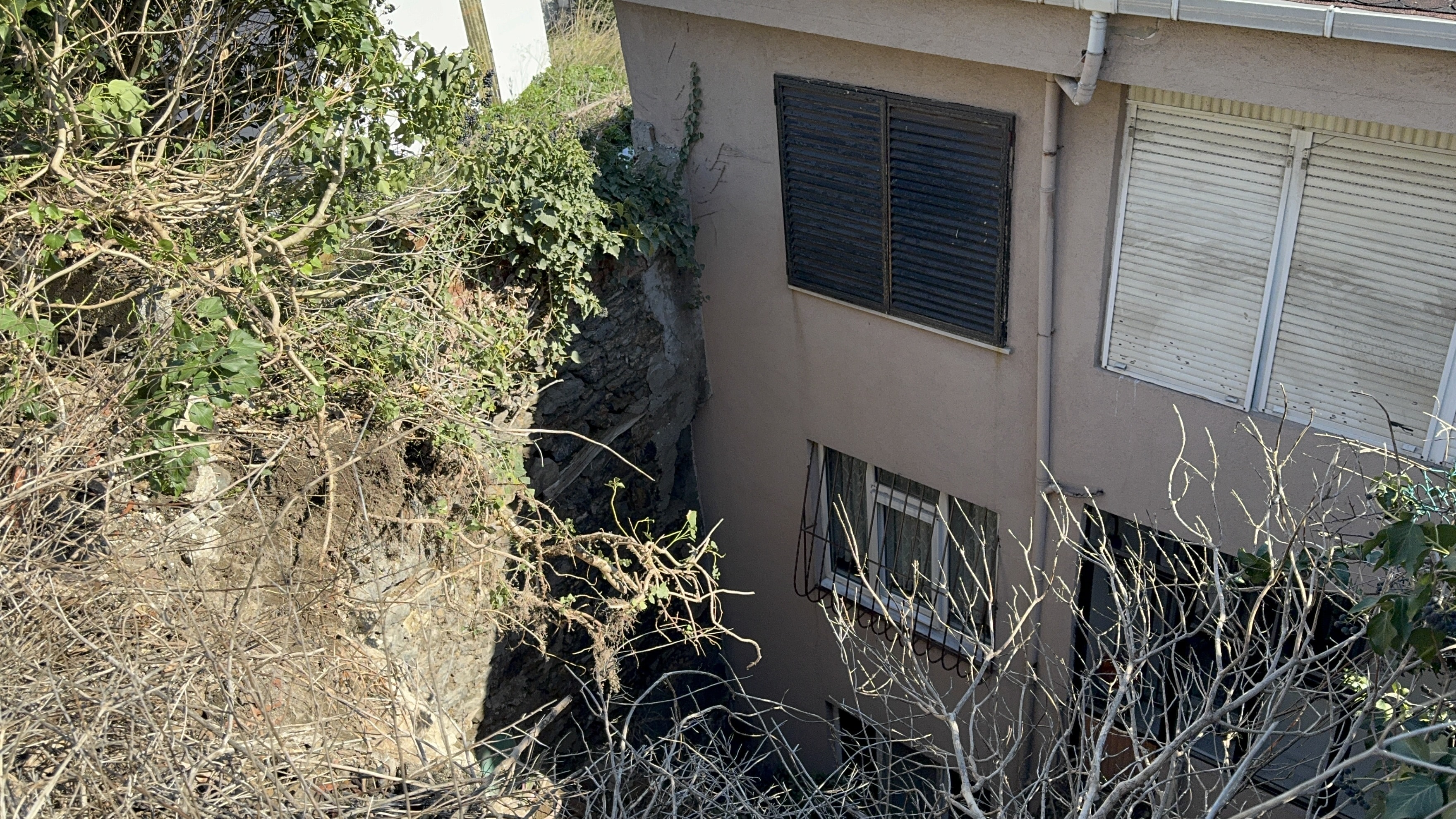 Boş araziden kopan taş ve toprak yığını, hızla aşağıya sürüklenerek dört katlı bir binanın duvarına çarptı. Olayda zemin, giriş ve birinci kattaki dairelerde ciddi hasar oluştu.