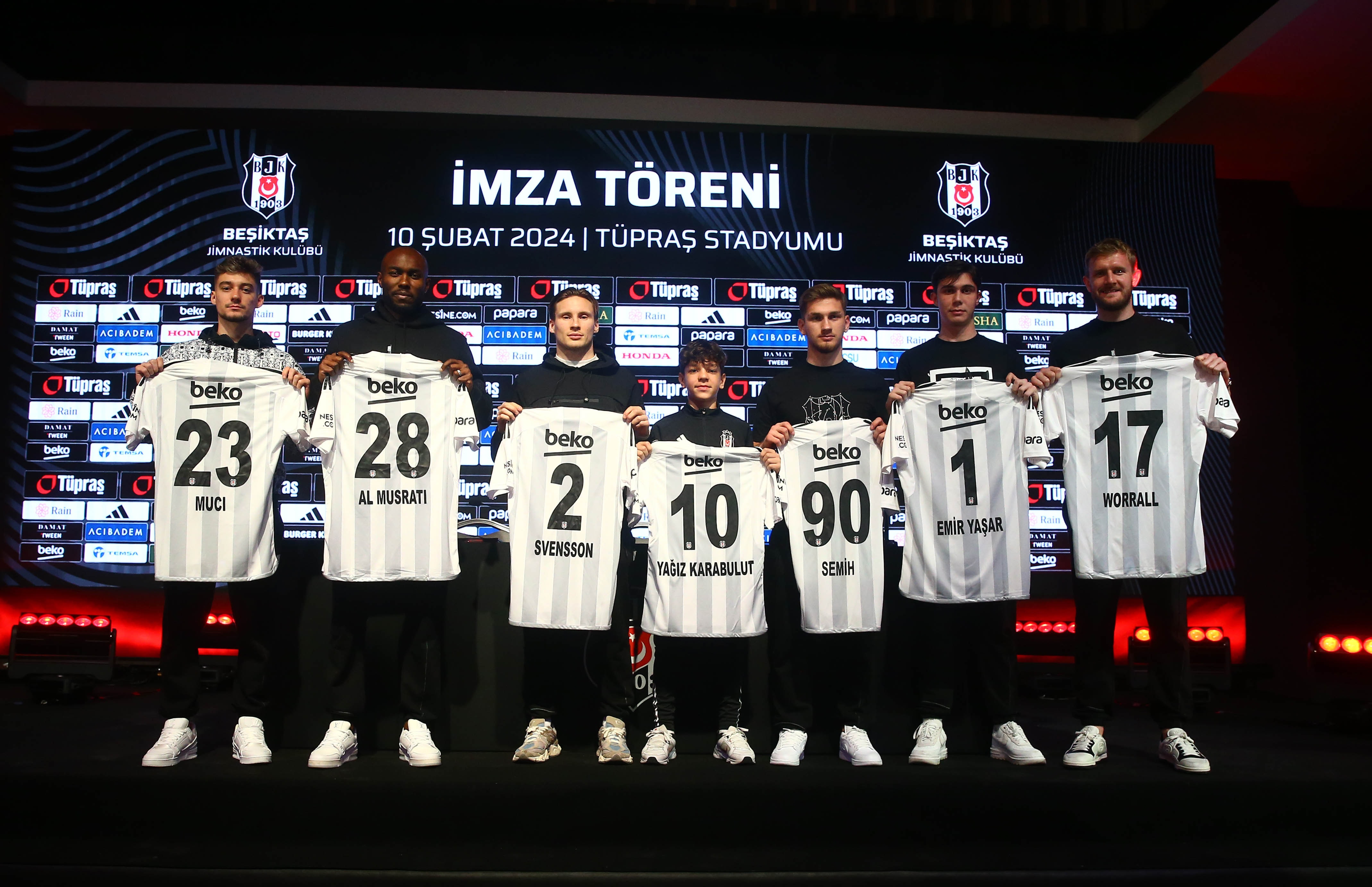 Beşiktaş'ta ara transfer döneminde kadroya dahil edilen futbolcular için imza töreni düzenlendi. Tüpraş Stadyumu'ndaki Moda Evi'nde düzenlenen imza törenine başkan Hasan Arat ve yönetim kurulu üyeleri de katıldı.