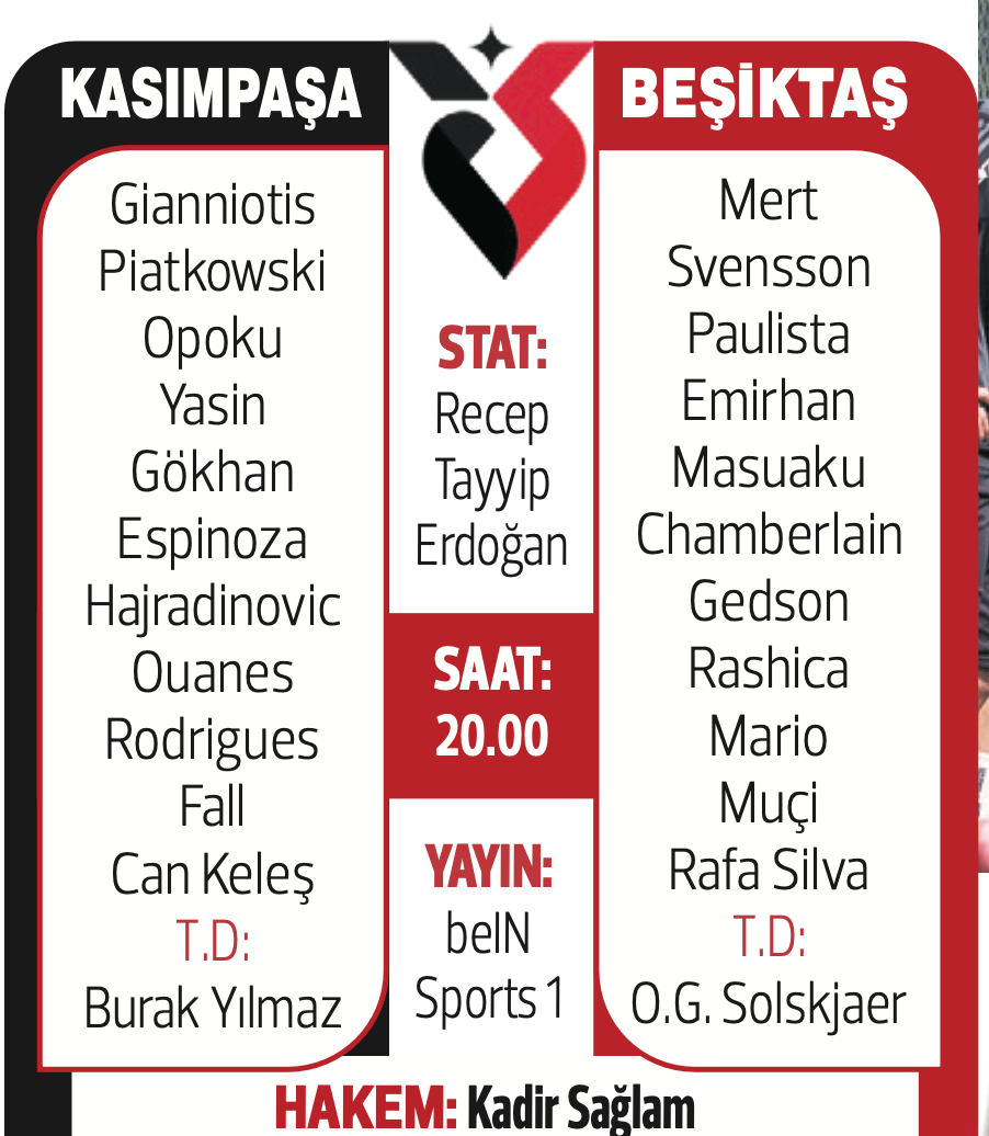 Beşiktaş Süper Lig’in 30. haftasında deplasmanda Kasımpaşa’ya konuk olacak. Recep Tayyip Erdoğan Stadı'nda saat 20.00'de başlayacak karşılaşmayı, hakem Kadir Sağlam yönetecek.Ligde son olarak derbide Galatasaray'ı 2-1 yenen Beşiktaş, üçüncü sıradaki Reeder Samsunspor'un mağlup olduğu haftada Kasımpaşa'yı yenerek Avrupa kupalarına katılım için iddiasını devam ettirmek istiyor. Karadeniz temsilcisi, 4 puan farkla üçüncü sırada yer alıyor.