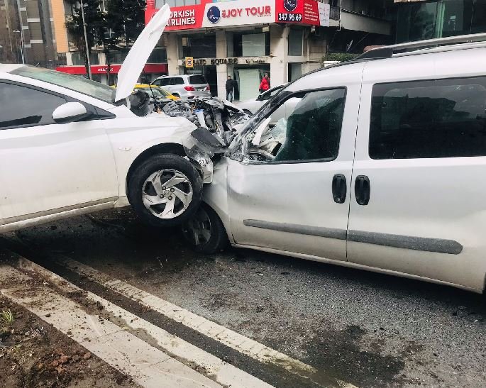 Karşı şeride geçen otomobil ise Murat Düzenli yönetimindeki hafif ticari araca çarparak aracın kaputunda askıda kaldı. Çarpmanın etkisi ile Düzenli'ye ön camın parçaları isabet ederek yüzünden yaralandı.