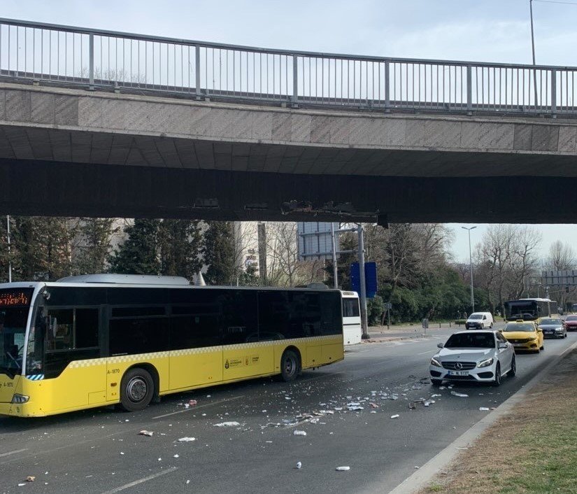 Haber verilmesi üzerine gelen belediye ekipleri yola düşen parçaları toplayıp, temizlerken itfaiye ekipleri de üst geçitten sarkan parçaları aldı. Olay nedeniyle bir süre kapatılan yol, parçaların alınmasının ardından açıldı. (DHA)
