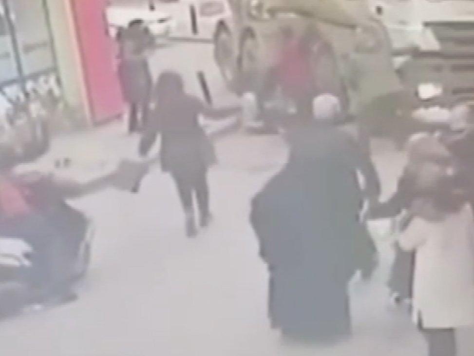 Ümraniye'de sokağa giriş yapan beton mikseri, yolun karşısına geçmeye çalışan kadına çarptı. Yaralı kadın hastaneye kaldırılırken, kaza anı güvenlik kamerasına yansıdı.