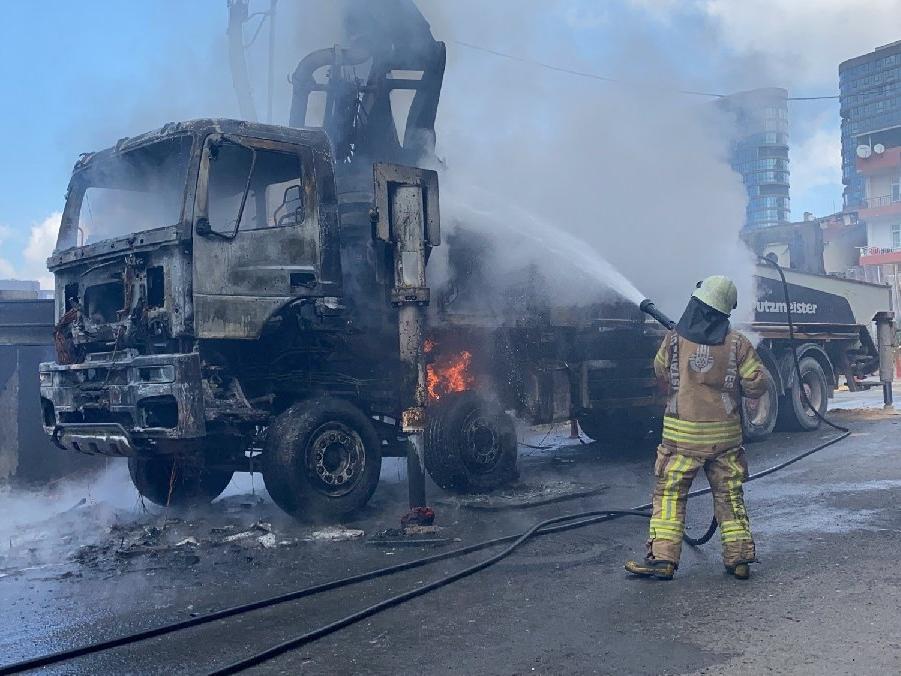 Kadıköy Mandıra Caddesi Yavuz Sokak'ta bir inşaat alanında çalışma yapan beton pompası kamyonunda yangın çıktı. Kamyon alev alev yanarken çevredekiler yangın tüpleriyle müdahale etmeye çalıştı. Alevlerin artmasıyla yakında bulunan beton mikserlerinden su sıkılarak müdahalede bulunuldu. Alevler 2 katlı eve de zarar verdi. Olay yerine gelen itfaiye yangını söndürdü.