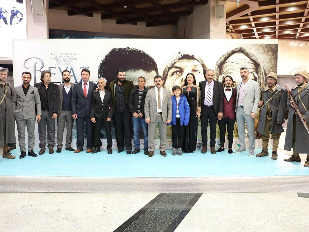 Sarıkamış'ta şehit olan askerlerin anlatıldığı Beyaz Hüzün-Sarıkamış filminin galasında kapının önüne kar yağdırıldı.