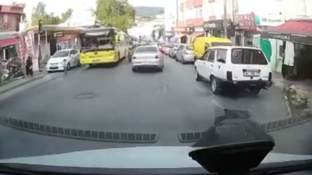 İstanbul Beykoz Paşabahçe Mahallesi'nde bir anda yola fırlayan küçük çocuğa İETT'ye ait otobüs çarptı. O anlar karşı şeritte bulunan bir aracın, araç içi kamerasına yansıdı.