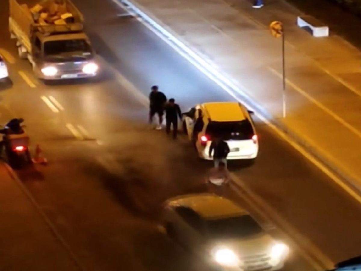 Kardeşinin ve arkadaşlarının araya girmesi ile aracına binen ağabey, şüphelilerin olay yerinden ayrılmaya çalıştığı sırada aracına çarpması üzerine çılgına döndü.