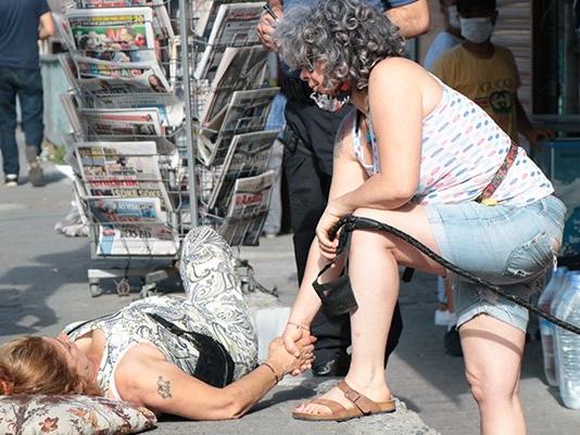 Bir kadın ise kaldırımda kanlar içinde yerde yatan yaralı arkadaşının yardımına koştu ve elini bir an olsun bırakmayarak destek oldu.