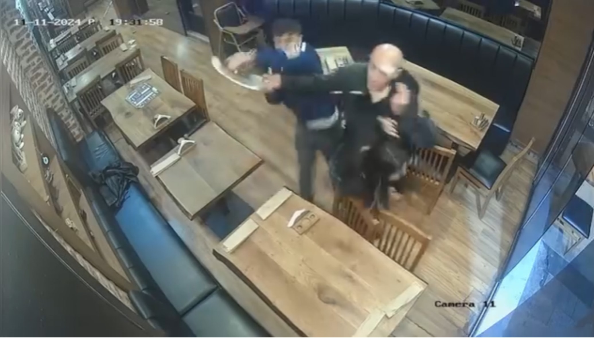 Bu durumu haber alan mülk sahiplerinin kardeşi olan Erkan E. (50), akşam saatlerinde restoranı bastı. Kadına ve çalışanlara tehditler savuran Erkan E., belinden çıkarttığı palayla saldırmaya başladı. Kadının ve çalışanları dehşeti yaşadığı olayda yaralanan olmazken, saldırgan palayla iş yerine zarar verdi. İş yerindeki çalışanın önce çekpasla kovaladığı ardından da eliyle müdahale ettiği saldırgan dışarıya çıkartıldı.