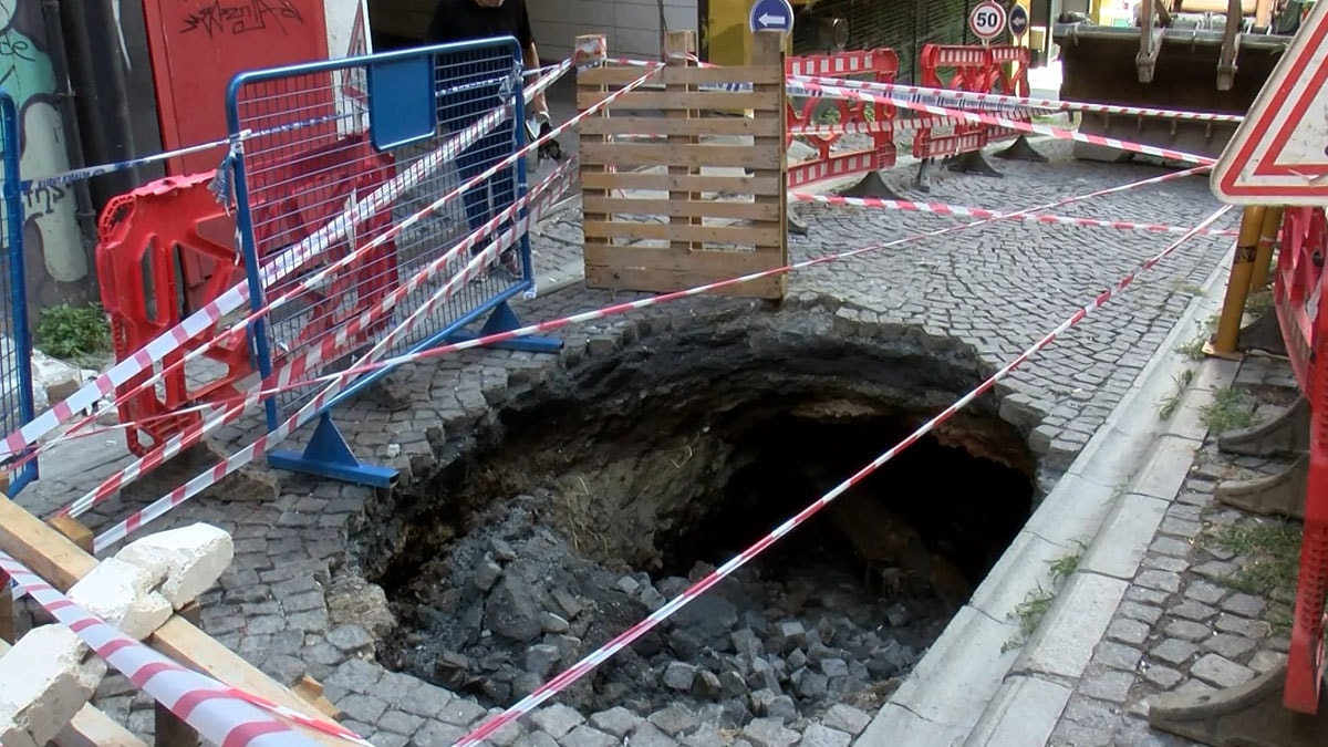Beyoğlu'nda belediye aracının geçtiği sırada yol çöktü. Yaklaşık 3 metrelik çöküntü nedeniyle yol araç ve yaya trafiğine kapandı.