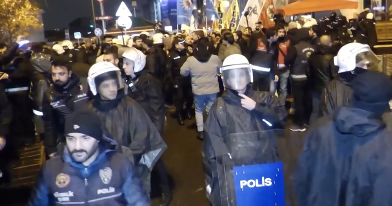 Ancak, Beyoğlu Kaymakamlığı'nın yasaklama kararı olduğu gerekçesiyle açıklamaya izin verilmedi. Bölgede yoğun güvenlik önlemi alan çevik kuvvet ekipleri, megafonla yaptıkları anonslarla basın açıklamasının yasaklandığını duyurdu ve toplanan gruba "Dağılın" uyarısında bulundu.