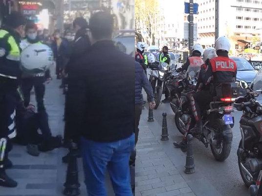 Beyoğlu'nda bıçakla banka şubesine girerek tehditler savuran saldırgan o sırada banka önünde denetim yapan trafik polislerince etkisiz hale getirildi.