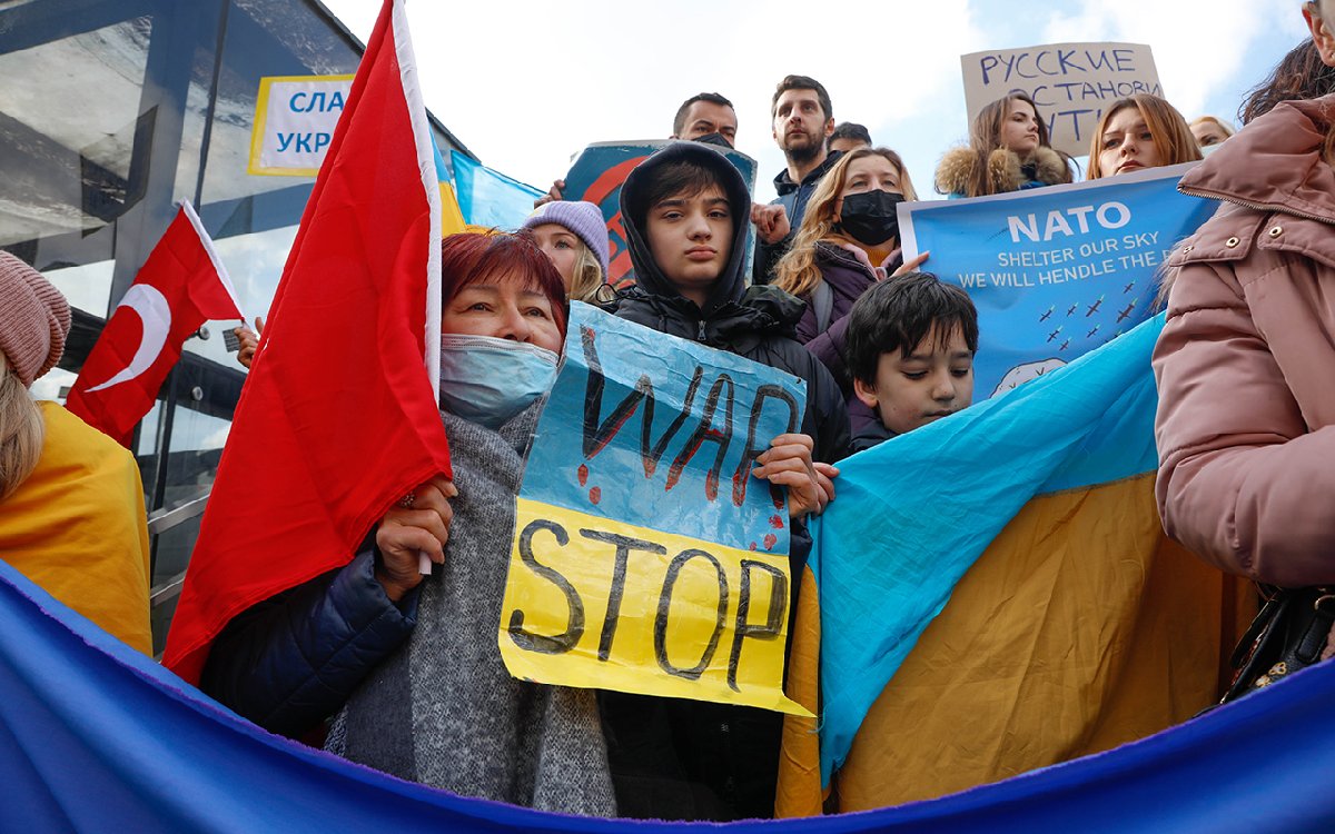 Eyleme Ukraynalıların yanı sıra Türkler de katıldı. Eyleme katılanlardan bazıları birbirlerine sarılarak gözyaşı döktü. DHA